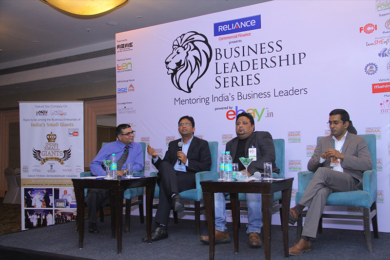 Mentors & Speakers(L-R)-Mr. Vinod Kumar, Managing Partner-India & Middle East, SDRC India Advisors LLP; Mr. Nitin Aggarwal, CEO, Prayag Polymers Pvt. Ltd.; Mr. Sumesh Kaintura, Managing Director,Sumesh Engineering Works; Mr. Chandra Mouli, Zonal Sales Manager, SME Loans-North & South, Reliance Commercial Finance