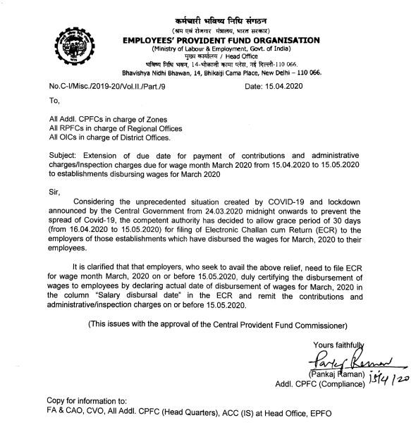 Act, 1952 from levy of penalty for delayed deposit of dues during lockdown