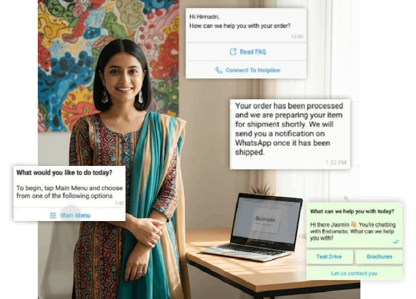 Send beautifully formatted product catalogs right in chat—no website needed.