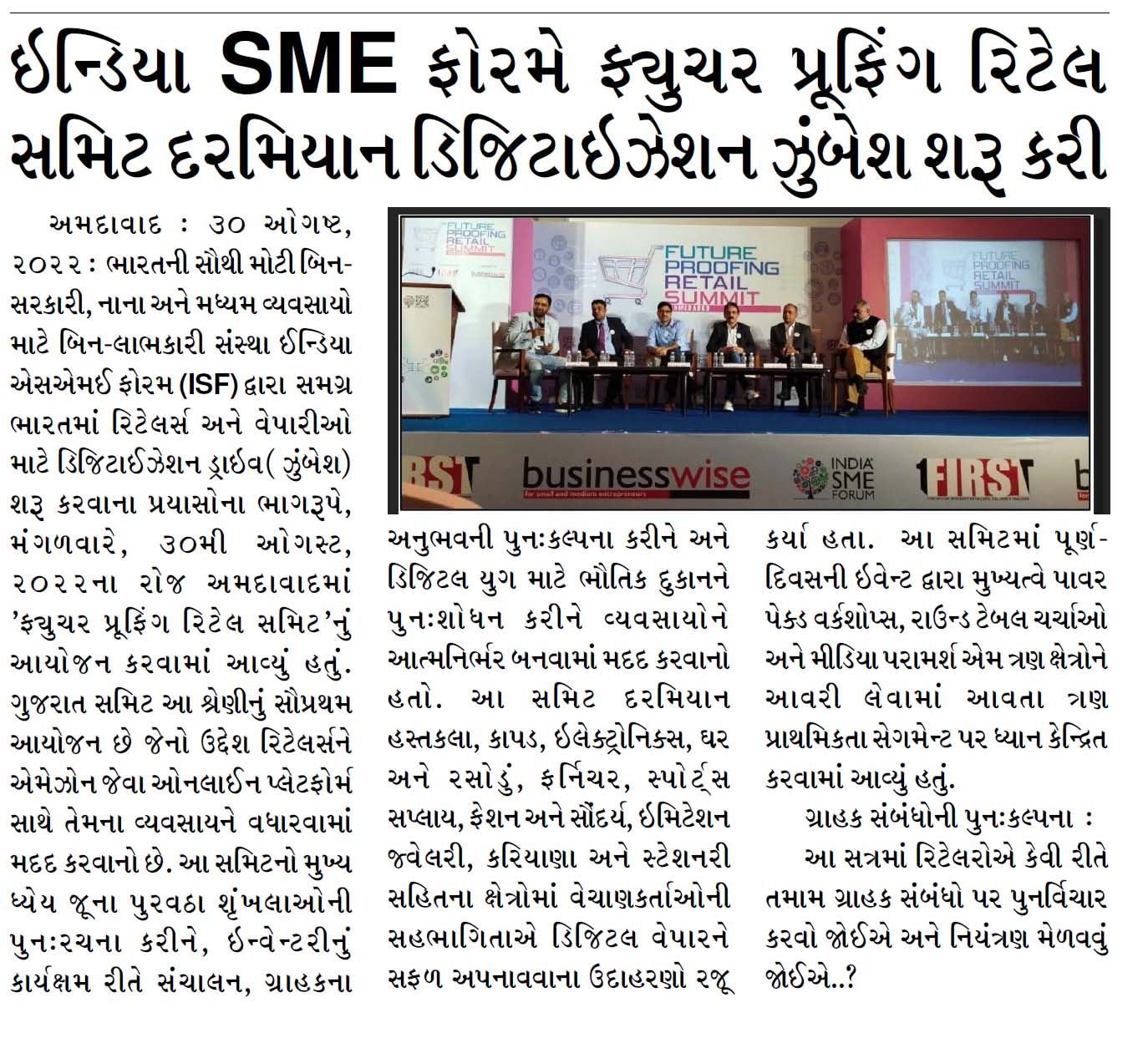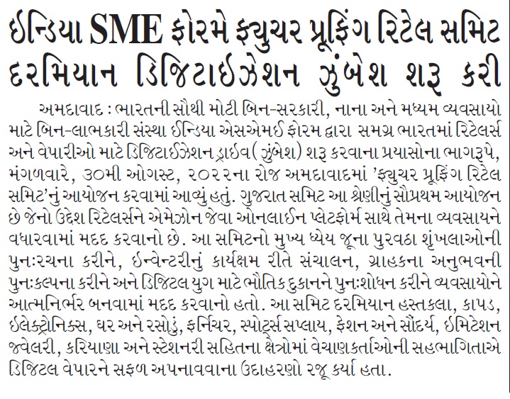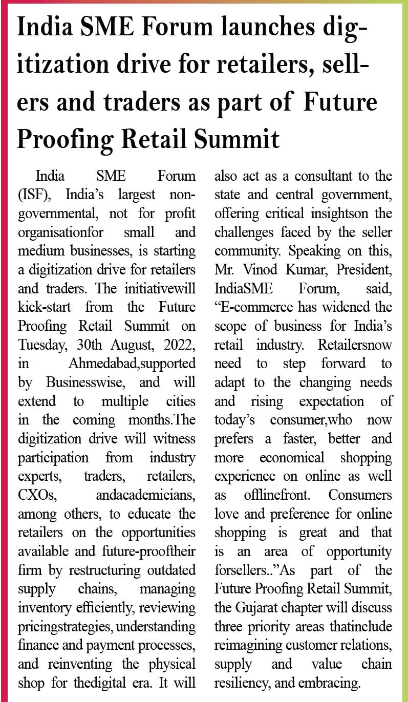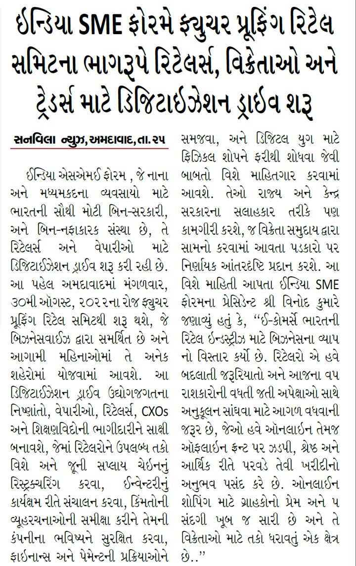 28 | 30-Aug | India SME Forum Launches digitization drive during Future Proofing Retail Summit | Gujarat No Beli | view |