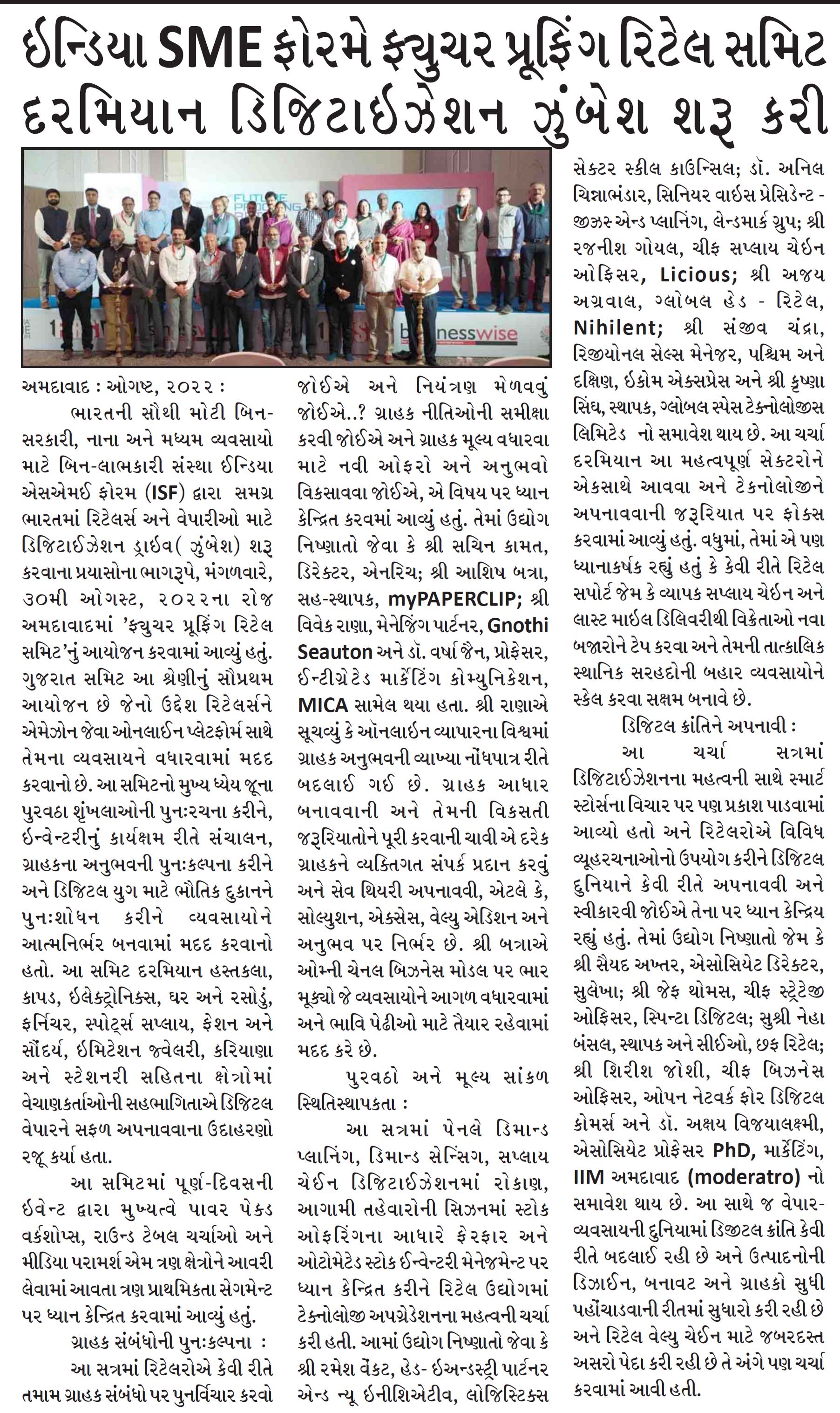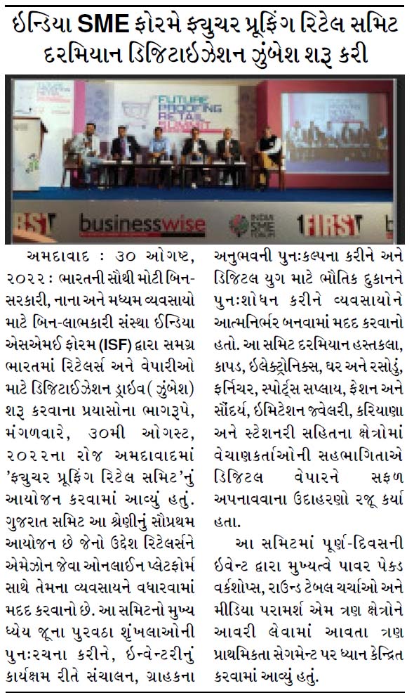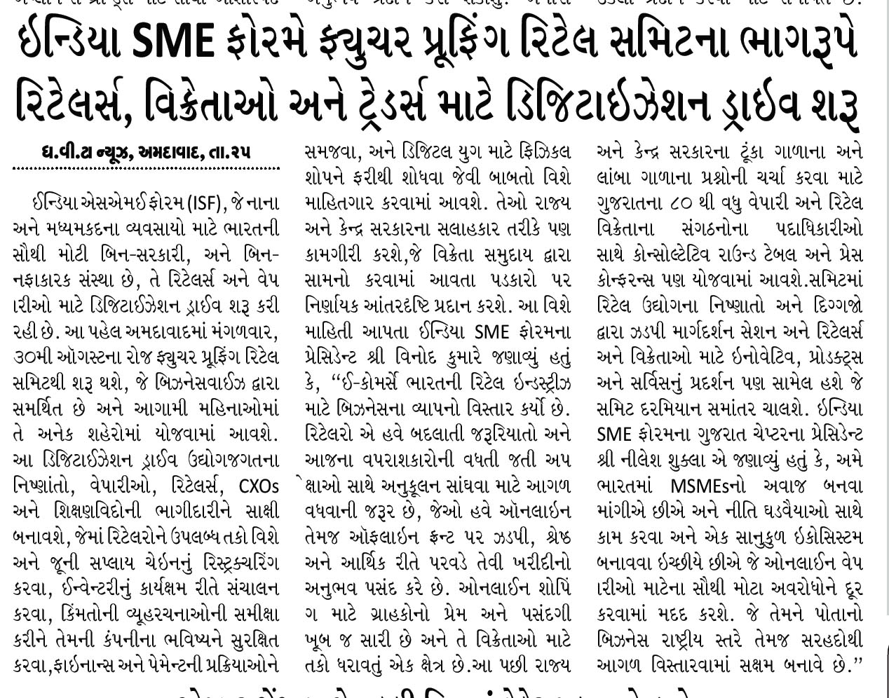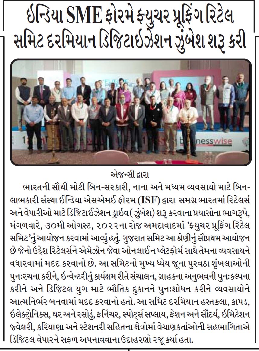 28 | 30-Aug | India SME Forum Launches digitization drive during Future Proofing Retail Summit | Gujarat No Beli | view |