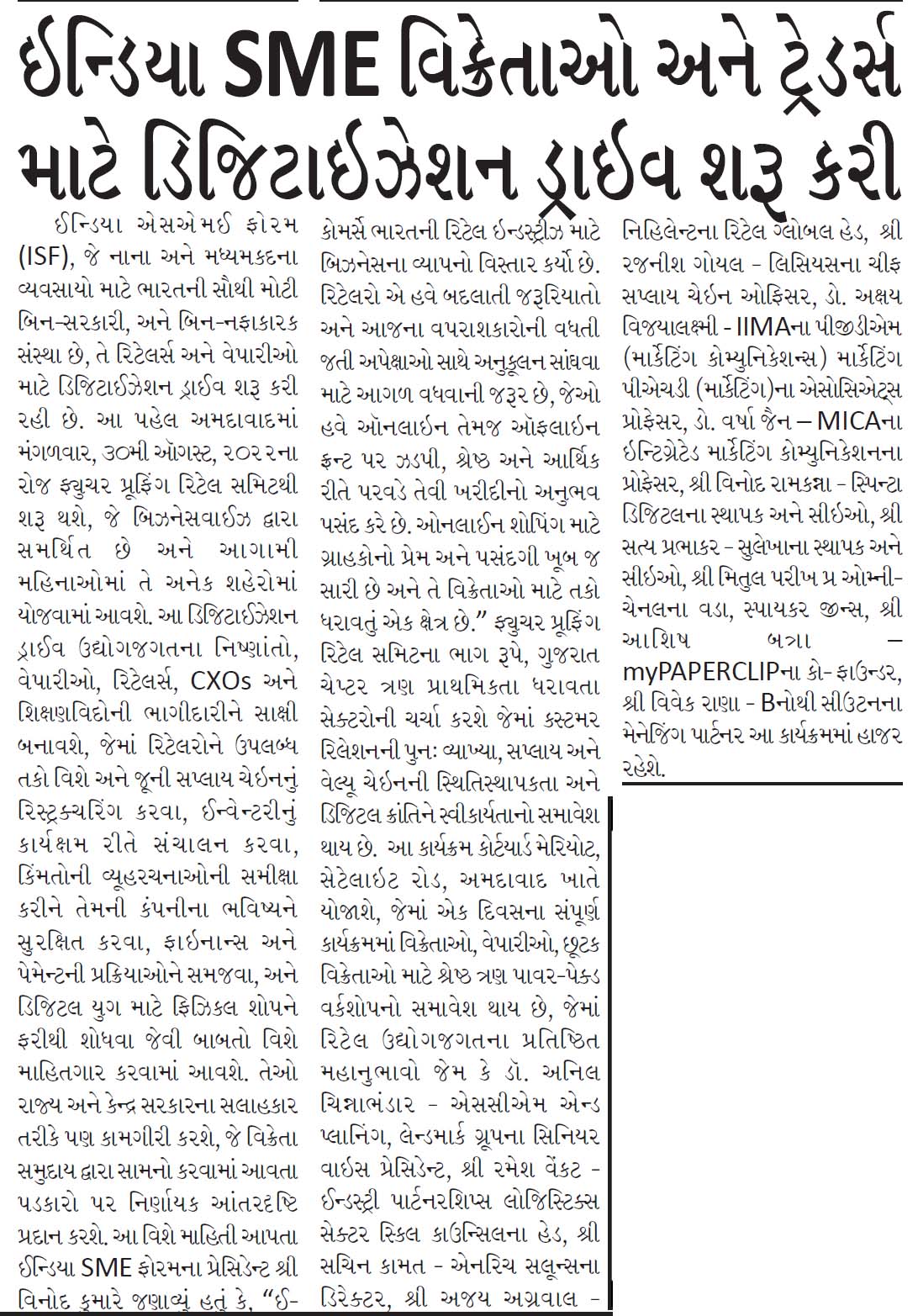 25 | 03-Sep | India SME Forum Launches digitization drive during Future Proofing Retail Summit | Gujarat Pranam | view |