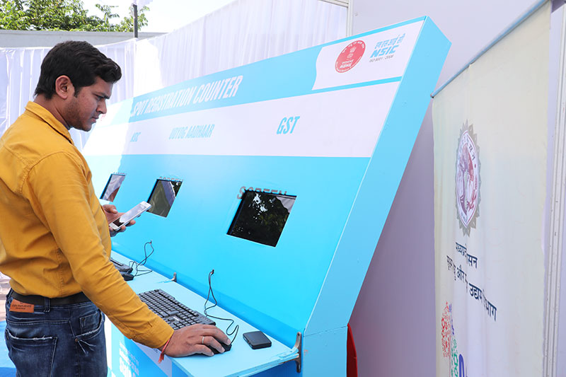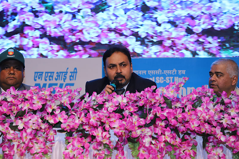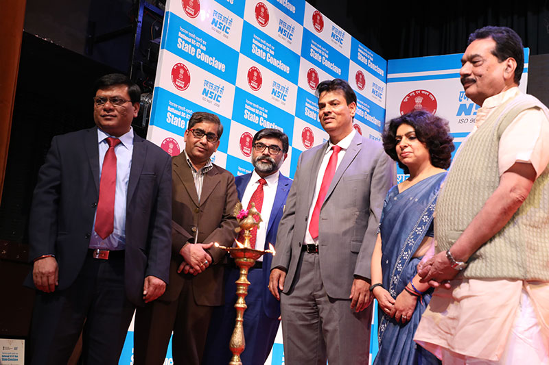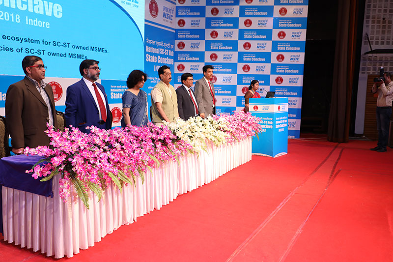 Lighting of the lamp - (L-R) Sri Milind Kamble, Chairman DICCI; Shri Virendra Sharma, MSME-DI; Shri Vinod Kumar, President ISF; Shri PK Jha, GM NSIC; Smt Alka Arora, Joint Secretary Ministry MSME;, & Shri Babu Singh Raghuvanshi, Hon Chairman, MP Laghu Udyog Nigam