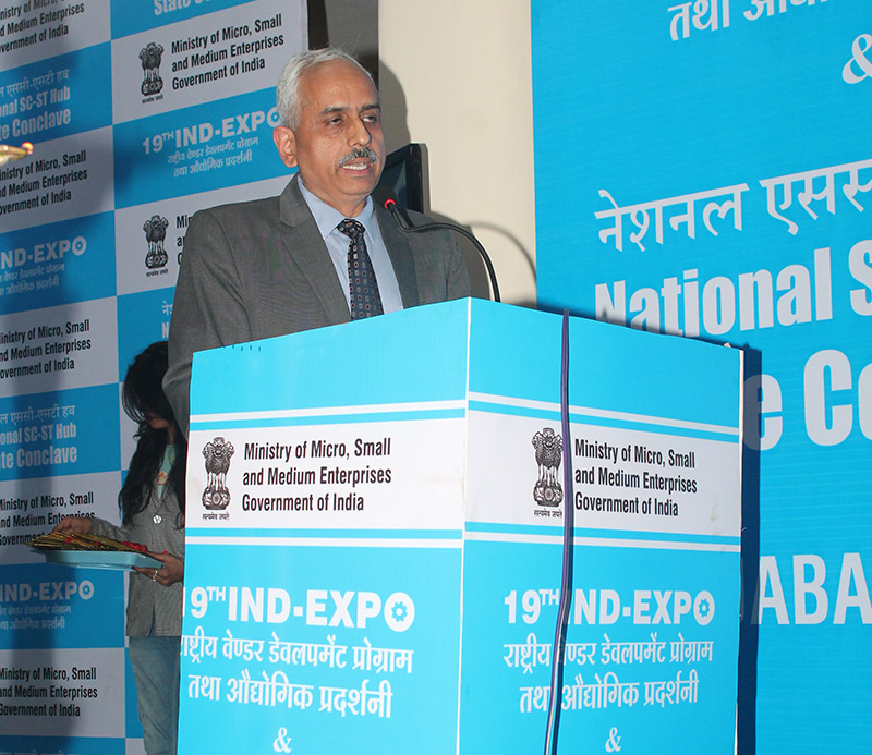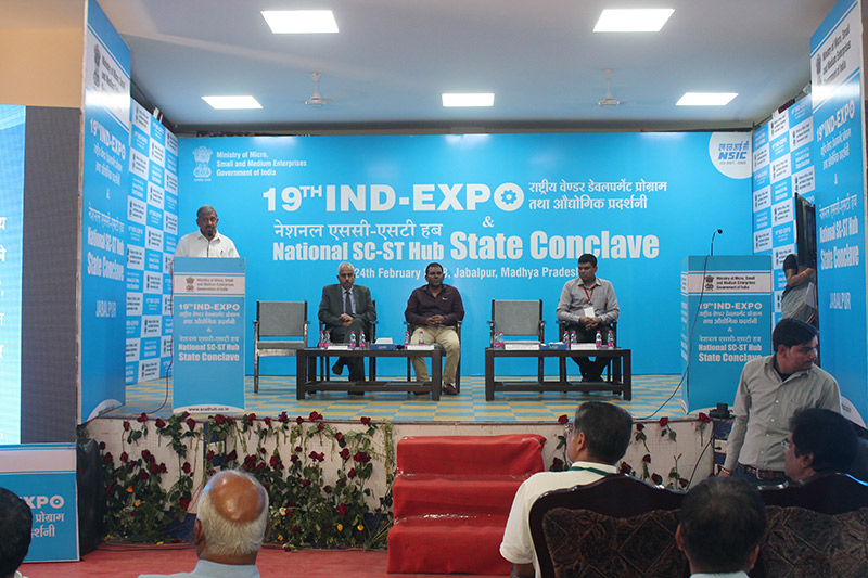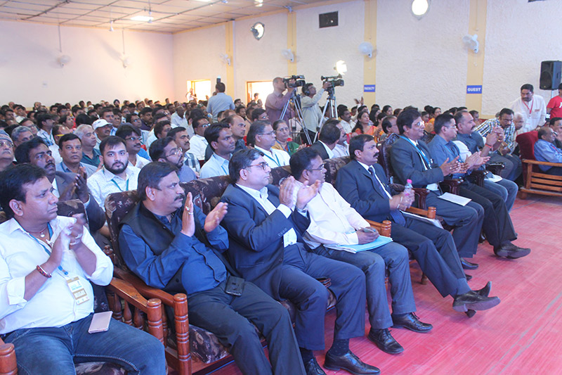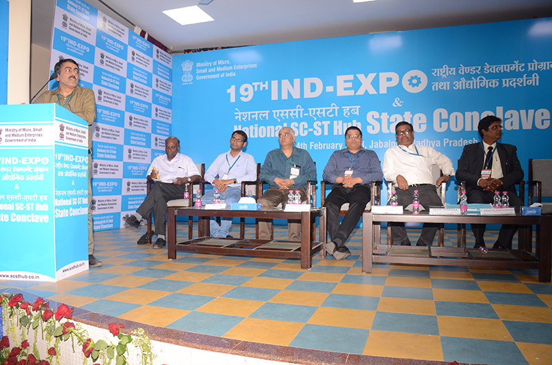 Session with CPSEs: (L-R) Shri P.K Arora, Joint GM, Vehicle Factory Jabalpur (standing on dias), Shri T Dhayalamoorthy, Additional General Manager (ASC), BHEL, Shri Ashish Varma, CMM, West Central Railway, Shri P.K Arora, Joint GM, Vehicle Factory Jabalpur, Shri S.P. Acharya, HOD (C&M), NTPC Ltd. Shri Mihir Chandra, DGM, MM, South Eastern Coalfields Ltd