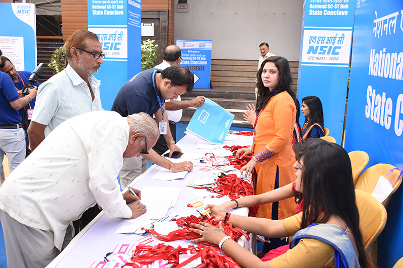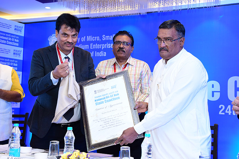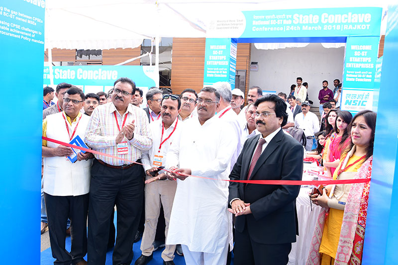 Inauguration of Exhibition by Shri Shankarbhai R. Dalwadi, Chairman Gujarat State Handloom & Handicrafts Development Corporation Ltd. along with Shri H.D. Shrimali, Additional Industries Commissioner, Govt. of Gujarat; Shri Sunil R. Zode, Member – Hi Powered Monitoring Committee NSSH;Shri Nilesh Shukla, President, Gujarat Chapter india SME Forum