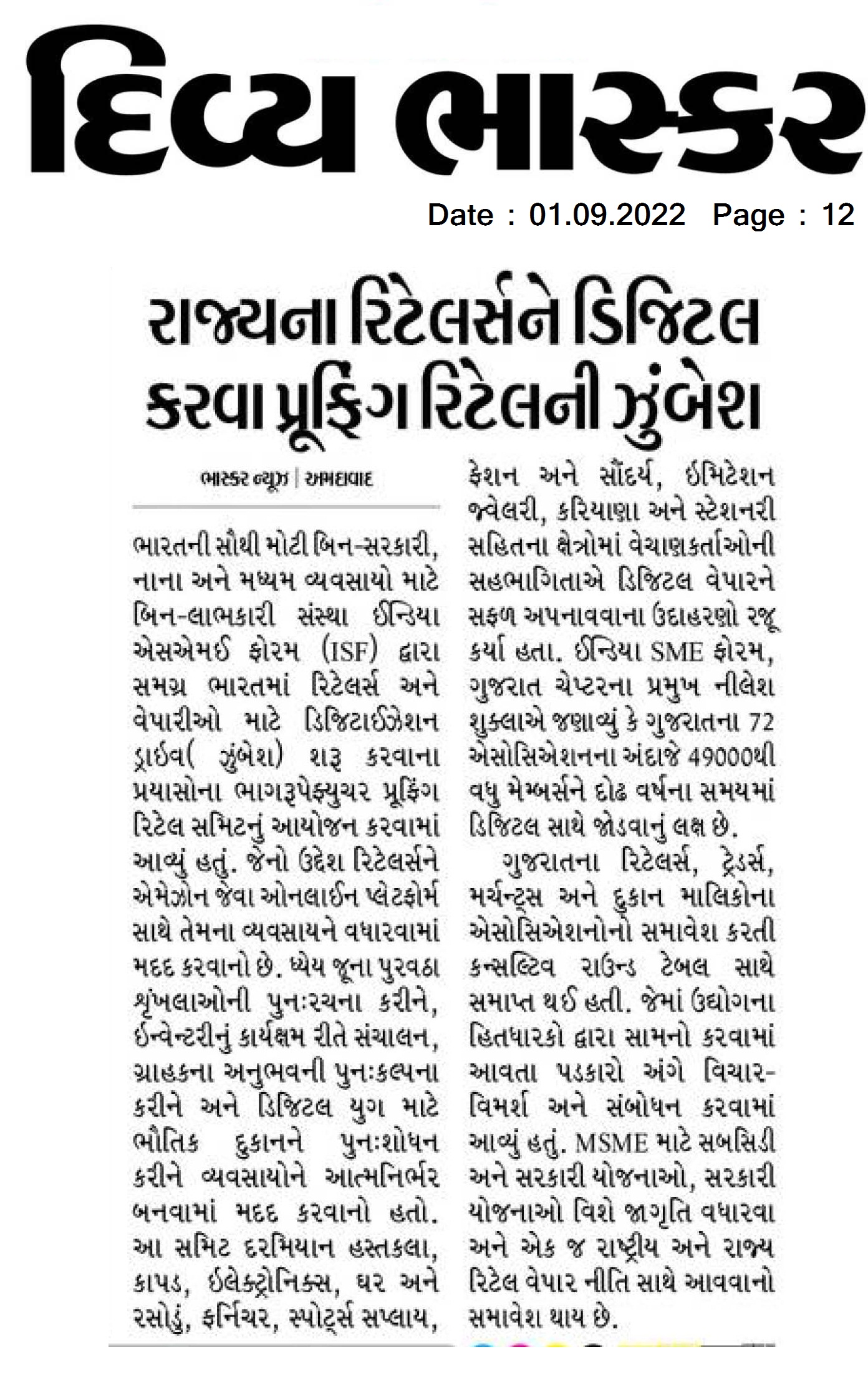 21 | 01-Sep | India SME Forum Launches digitization drive during Future Proofing Retail Summit | Divya Bhaskar | view |