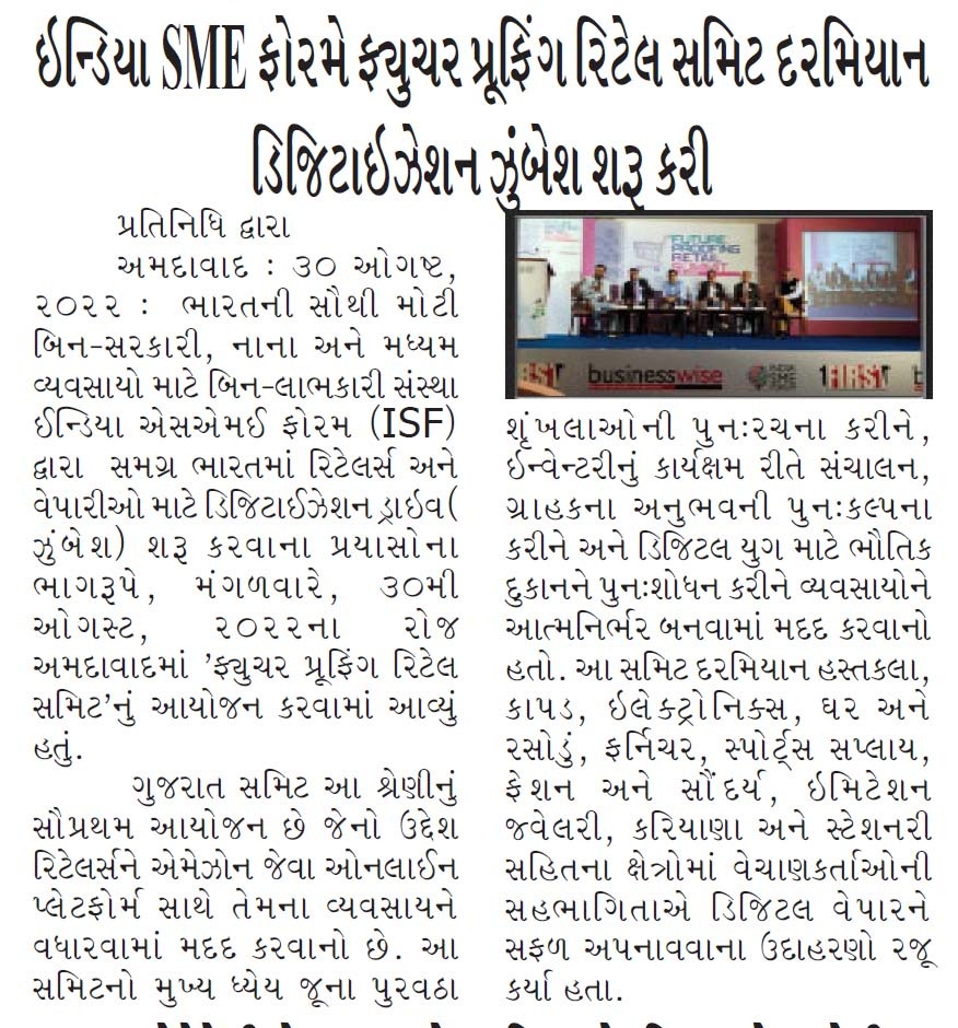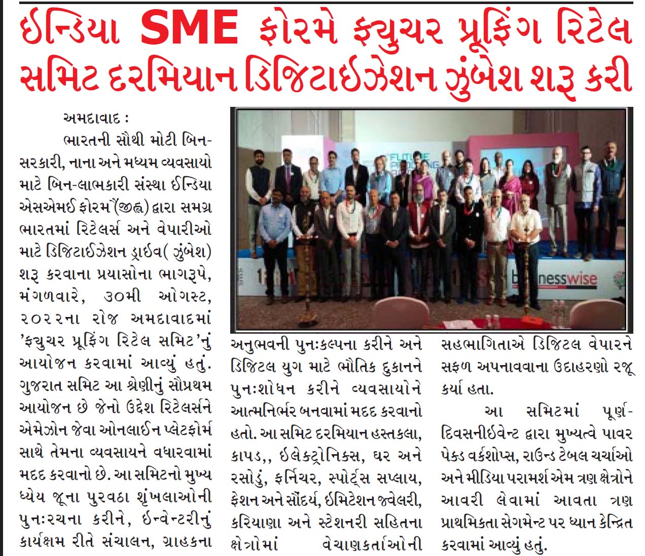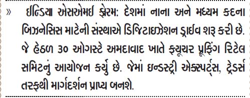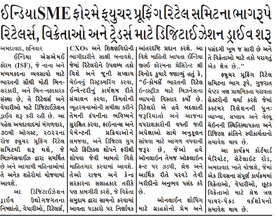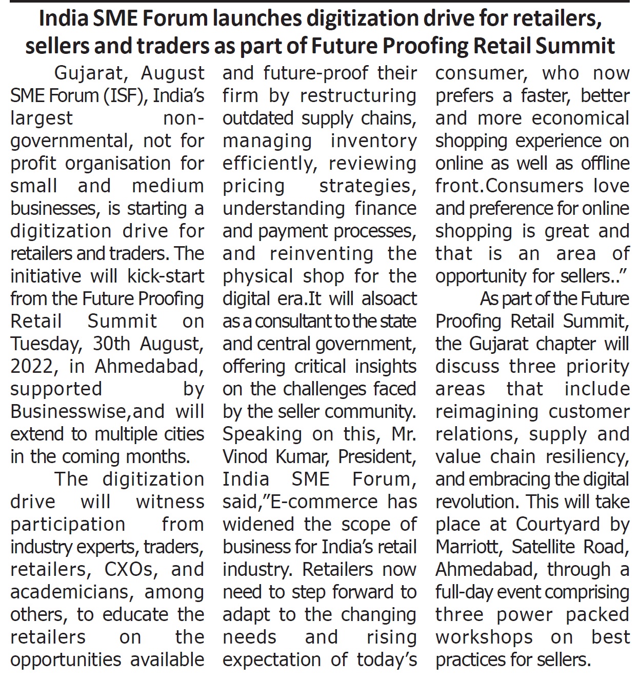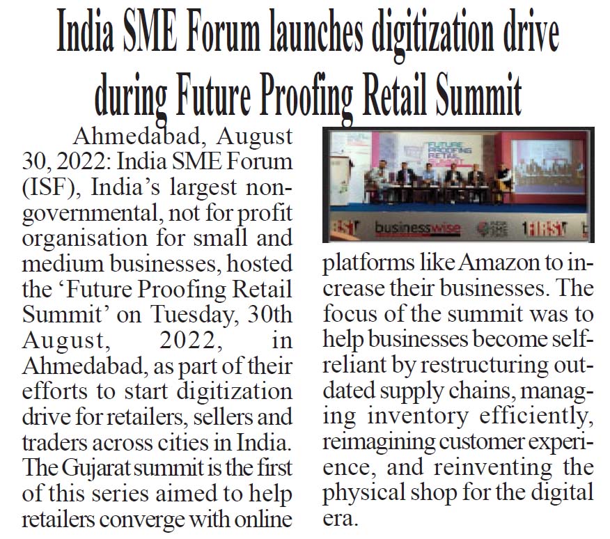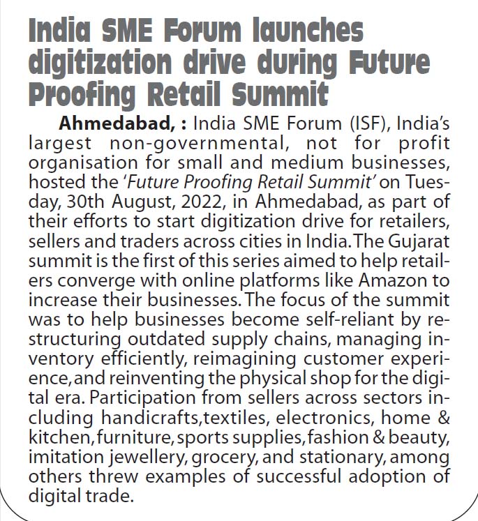 28 | 30-Aug | India SME Forum Launches digitization drive during Future Proofing Retail Summit | Gujarat No Beli | view |