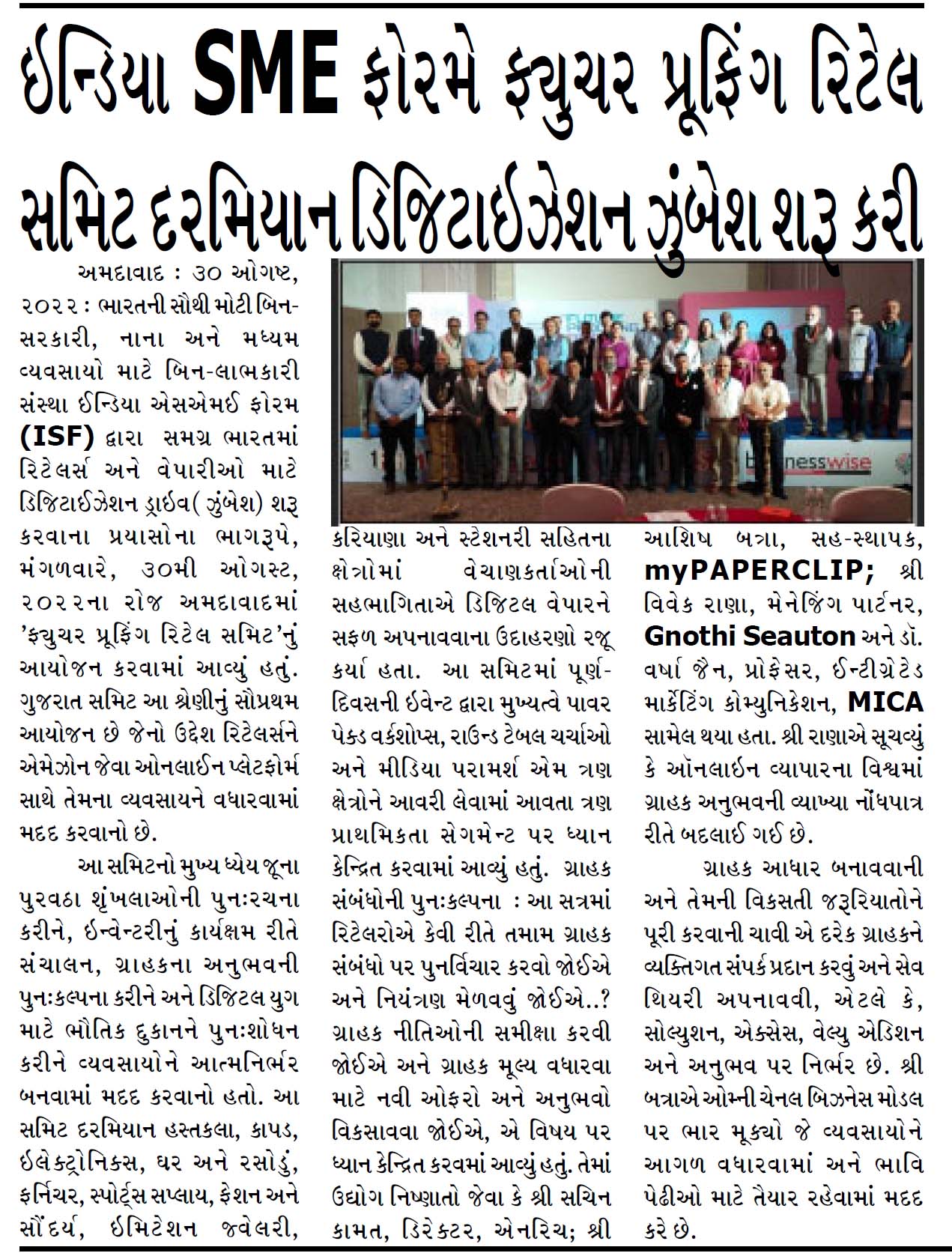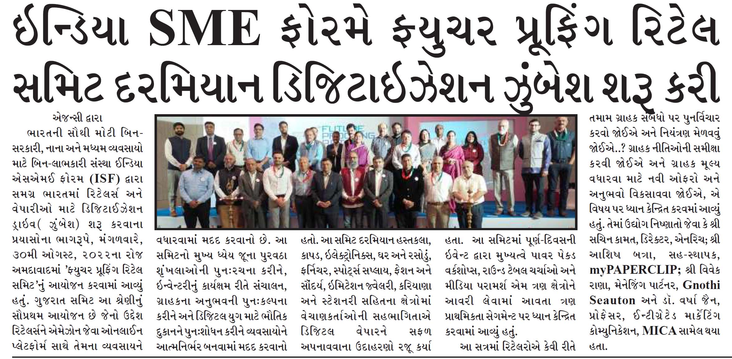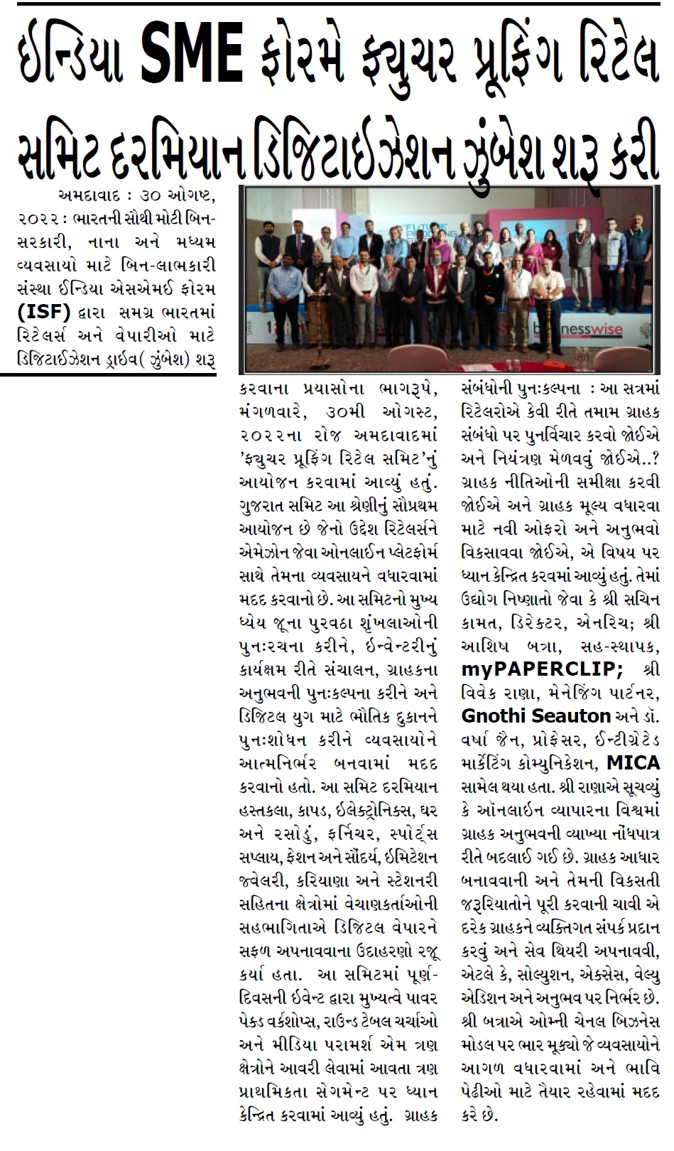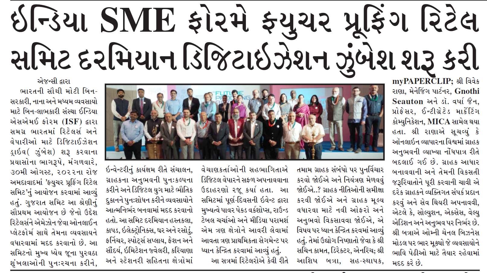 28 | 30-Aug | India SME Forum Launches digitization drive during Future Proofing Retail Summit | Gujarat No Beli | view |