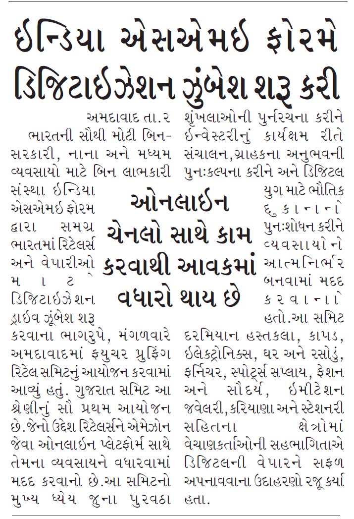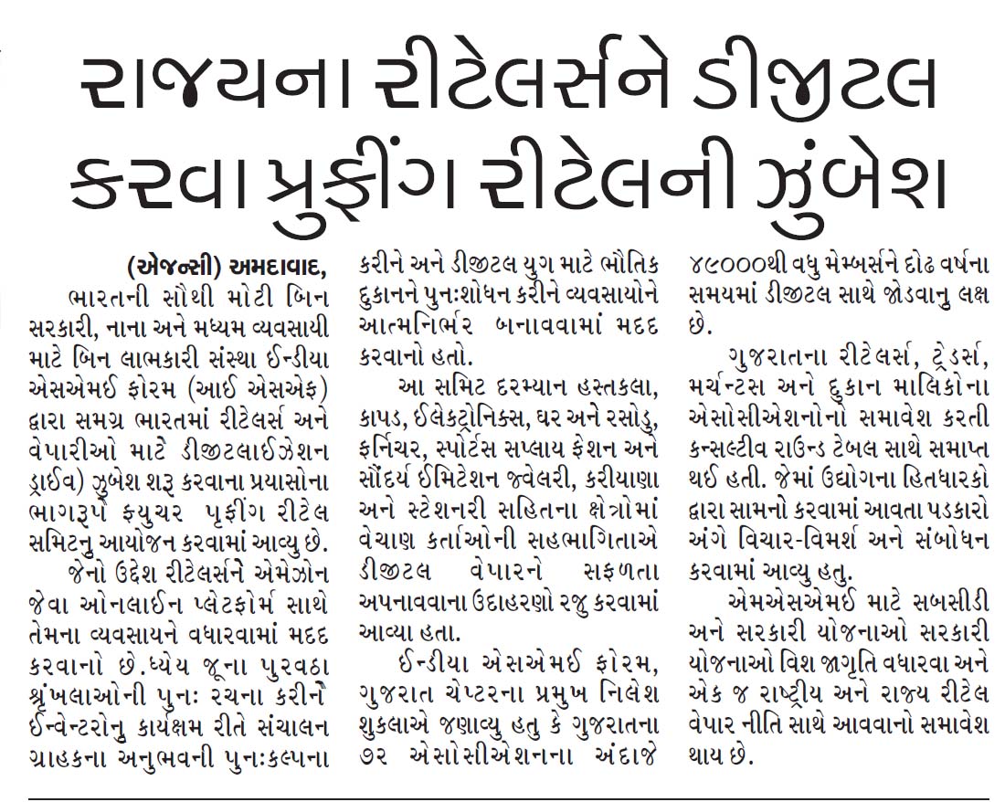 37 | 02-Sep | India SME Forum launches digitization drive during Future Proofing Retail Summit in Ahmedabad | Navjeevanexpress | view |