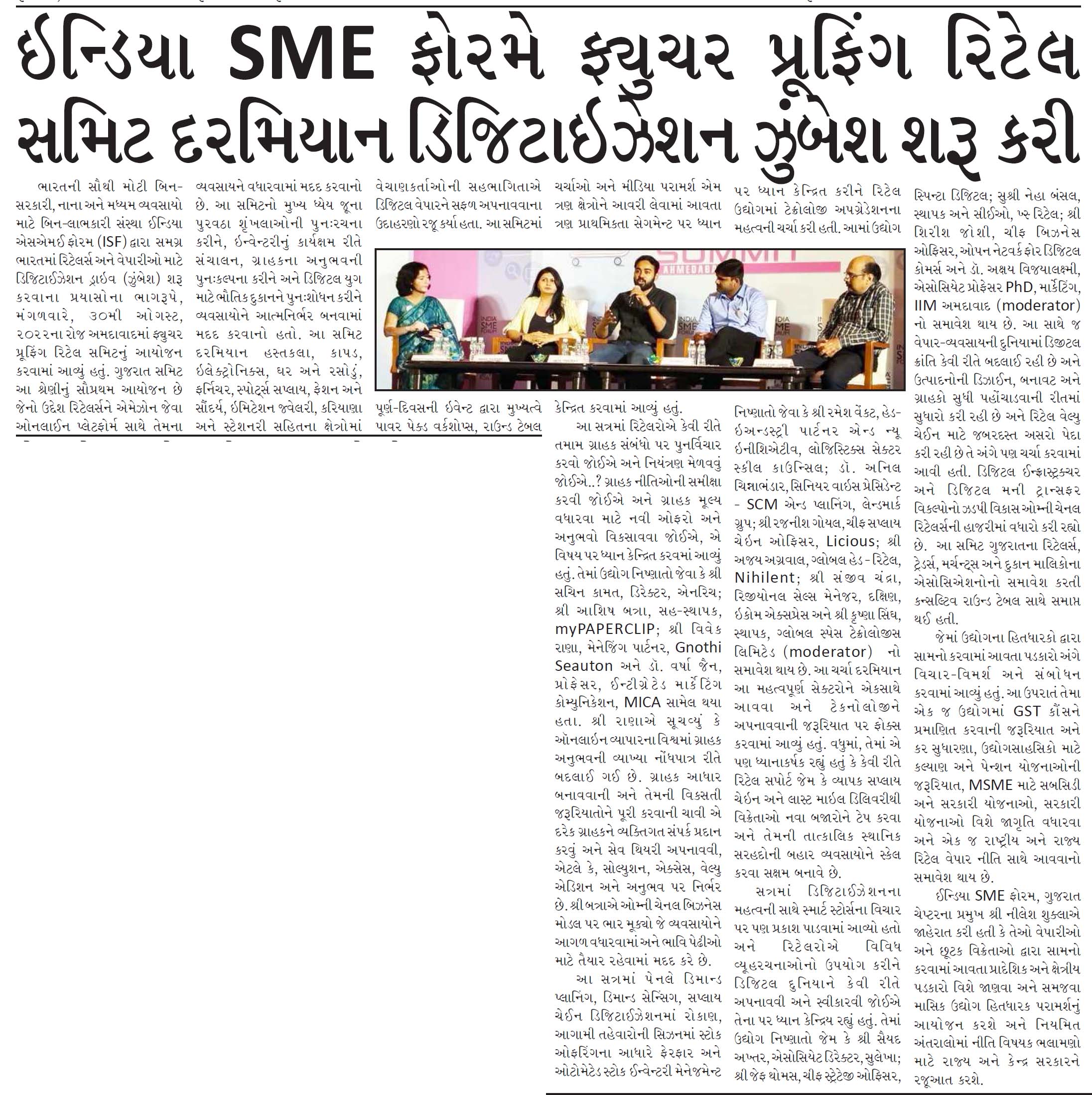25 | 03-Sep | India SME Forum Launches digitization drive during Future Proofing Retail Summit | Gujarat Pranam | view |