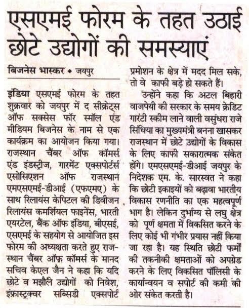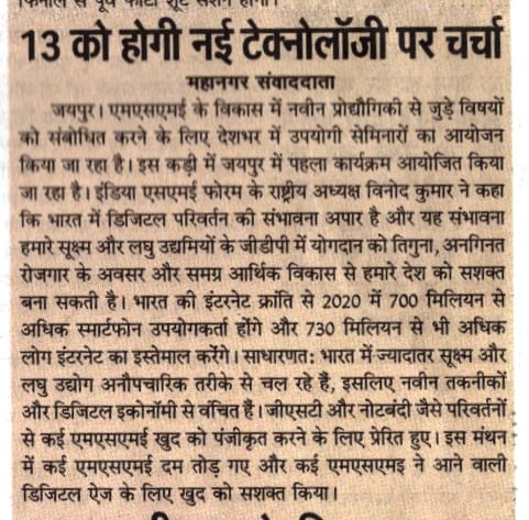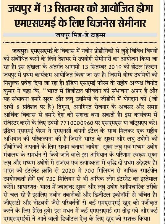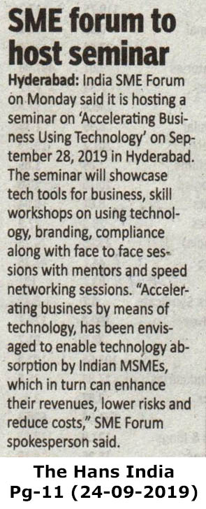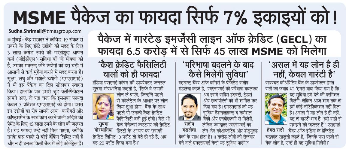 | 655 | 28-06-2021 | The Economic Times | World MSME Day 2021: Putting MSMEs at the heart of inclusive and sustainable recovery | Online | View details | |