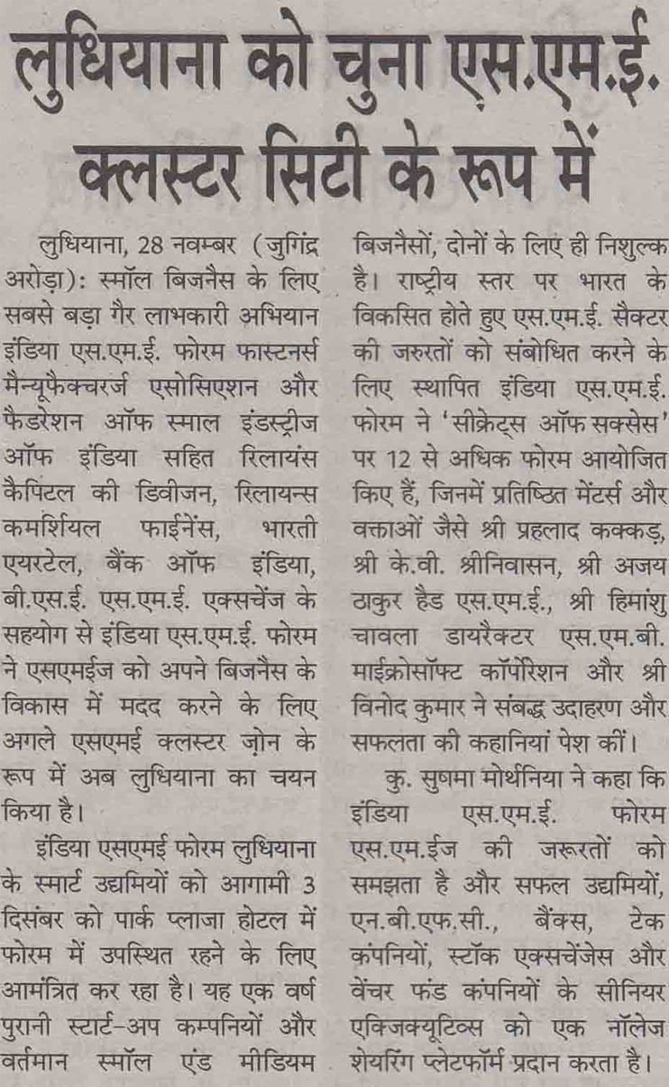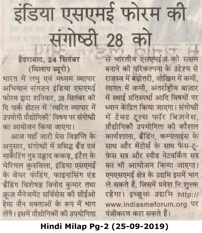 | 679 | 06-03-2025 | Business World | India SME Forum, Niti Aayog Eye To Bridge Gender Gaps In Entrepreneurship | Online | View details | |