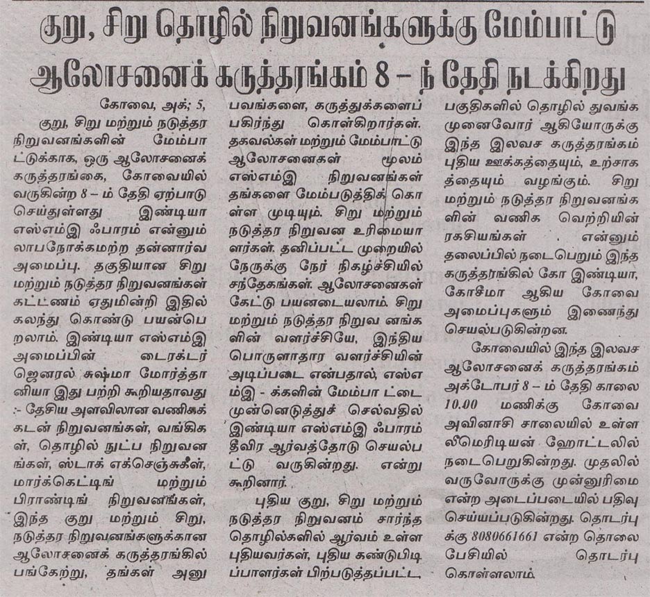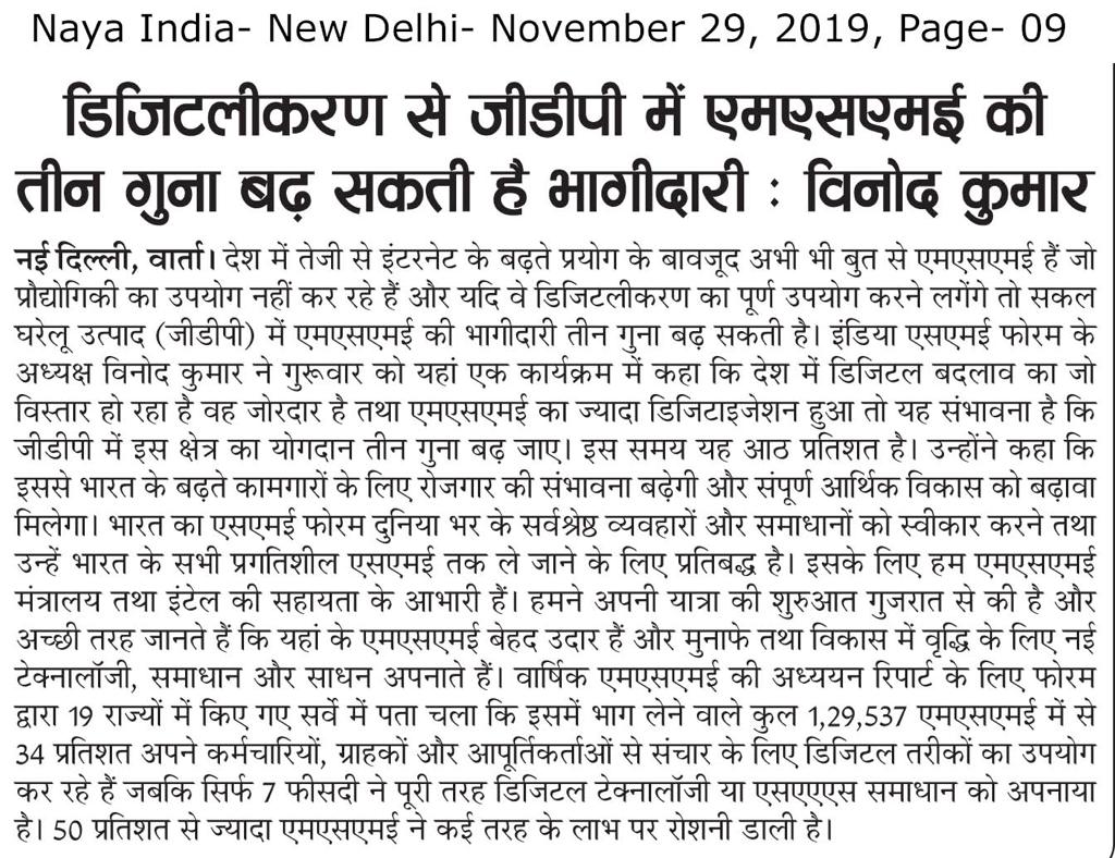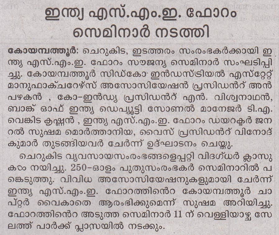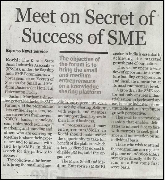 | 702 | 07-03-2025 | DT Next | India SME Forum and NITI Aayog Launch A Million Women Arise Program | Online | View details | |