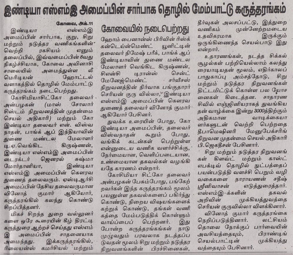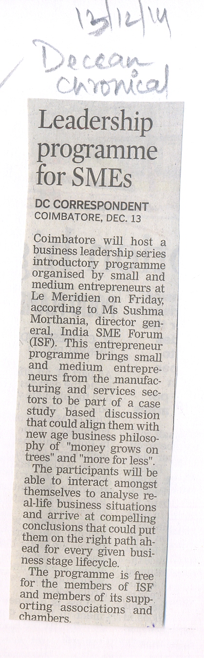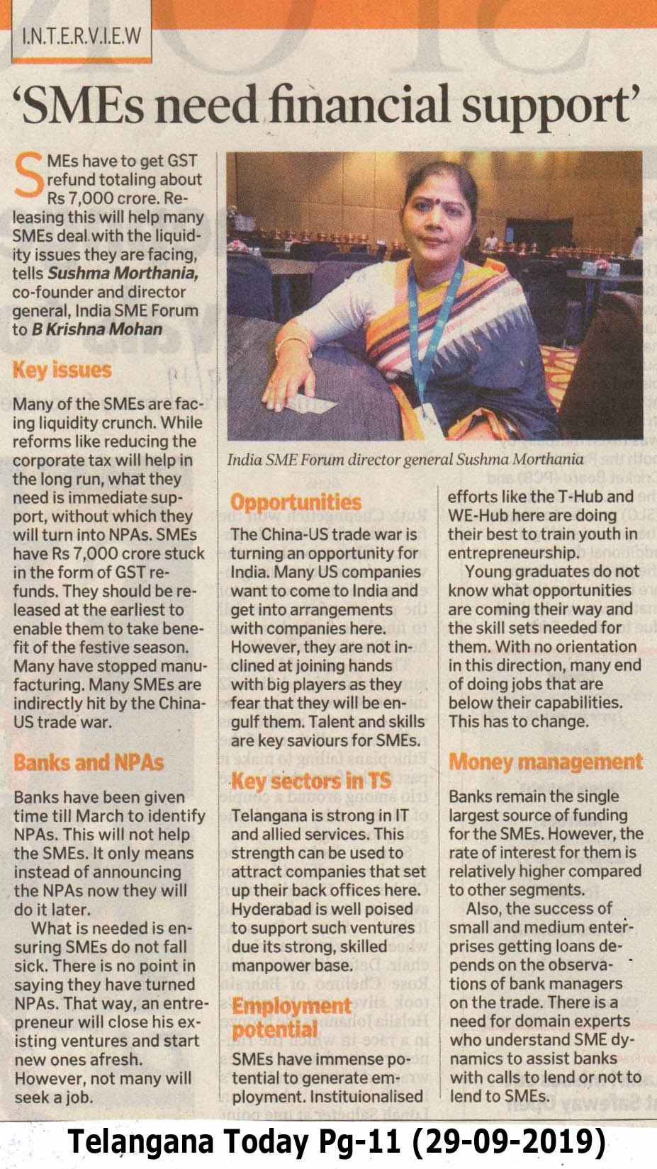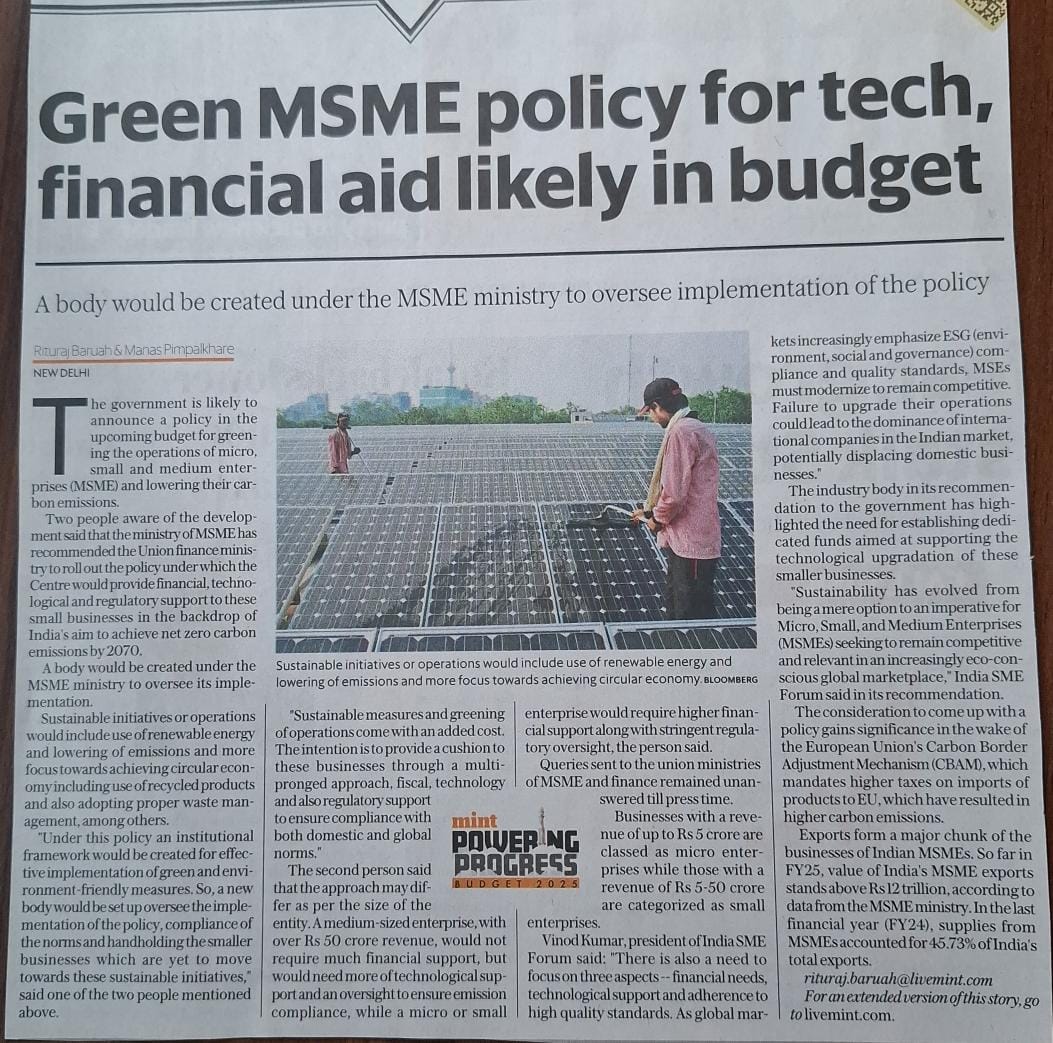 | 702 | 07-03-2025 | DT Next | India SME Forum and NITI Aayog Launch A Million Women Arise Program | Online | View details | |