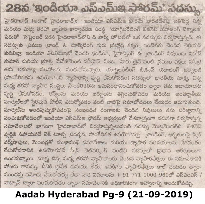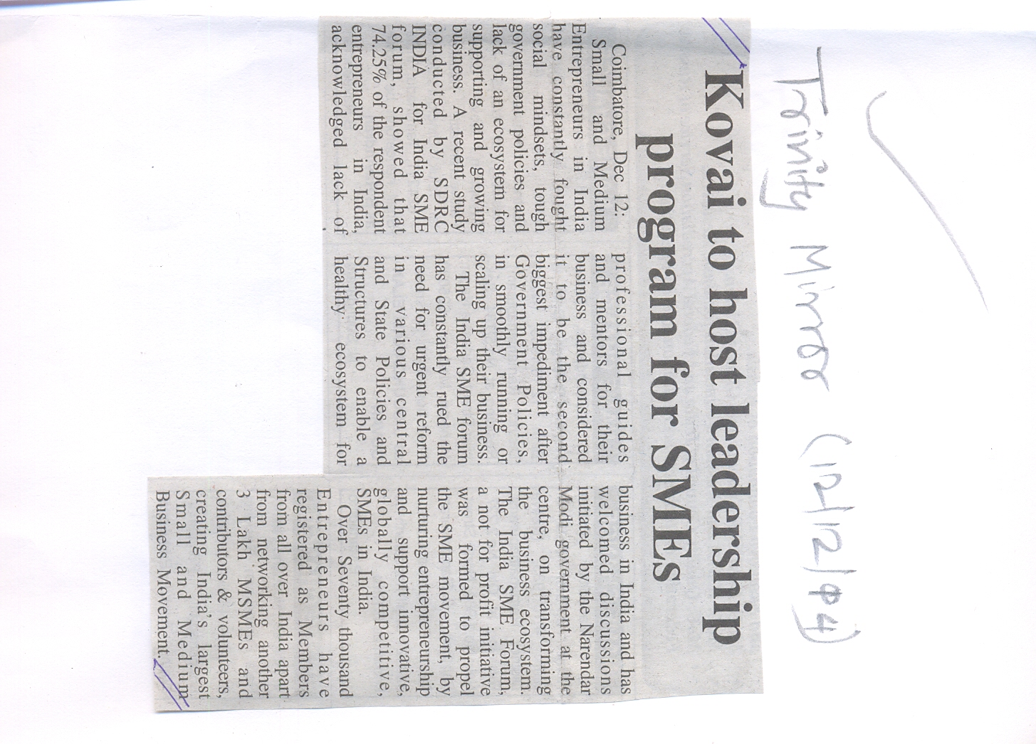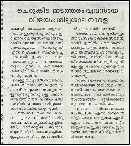 | 620 | 04-06-2021 | Media News 4 You | Home Delivery of all Items is a Necessity for SMEs in Case of COVID Wave Three: India SME Forum and MSMEs to the Government | Online | View details | |