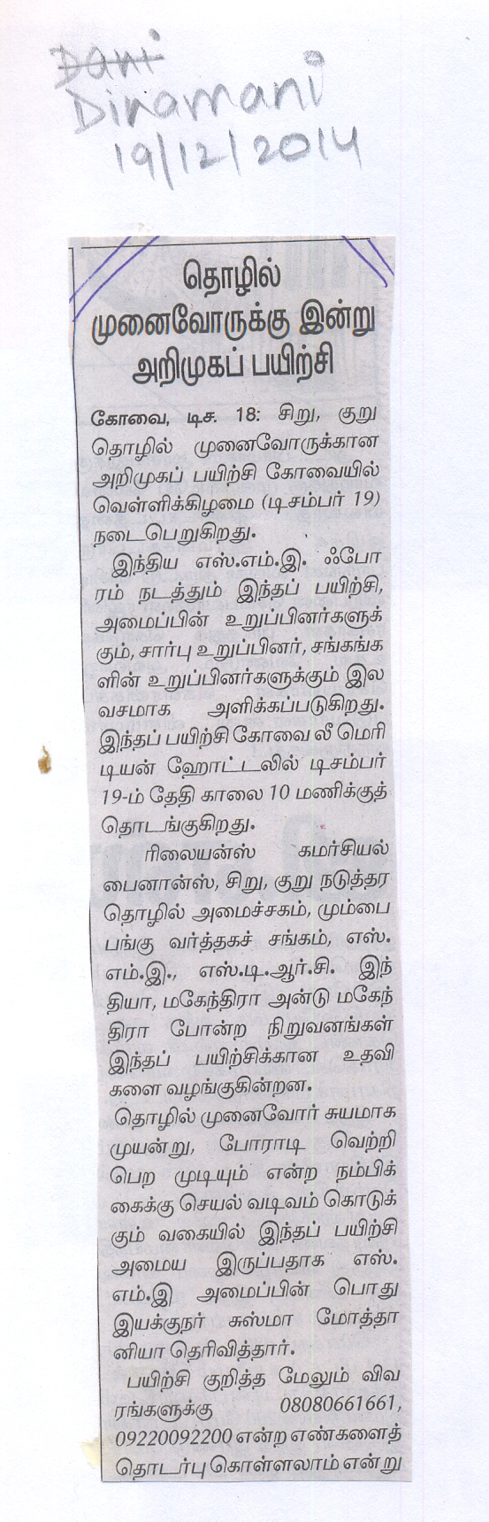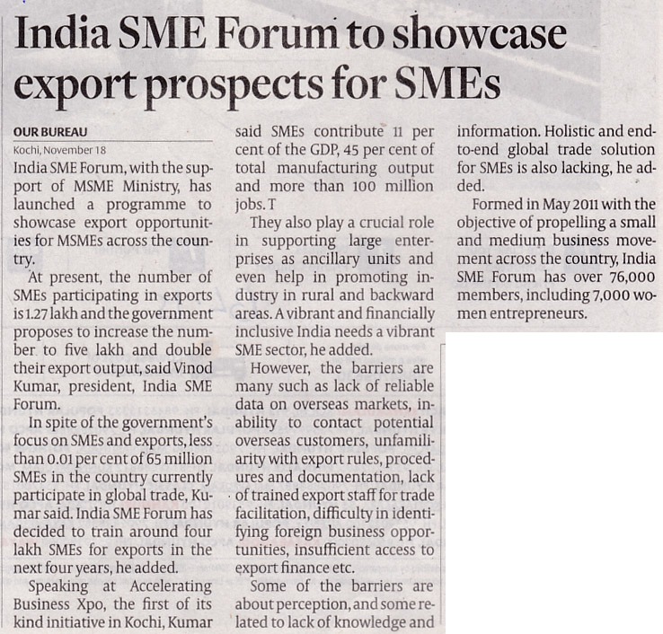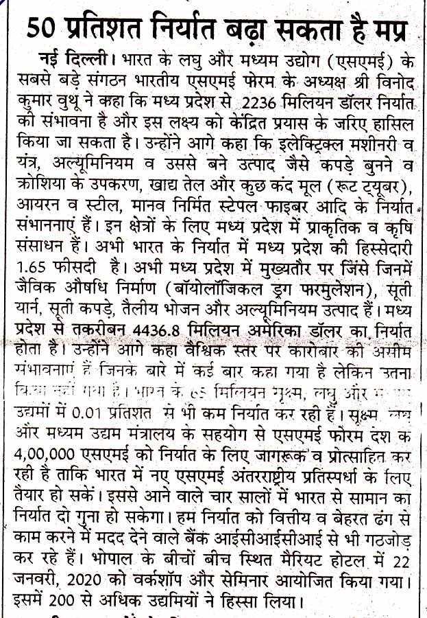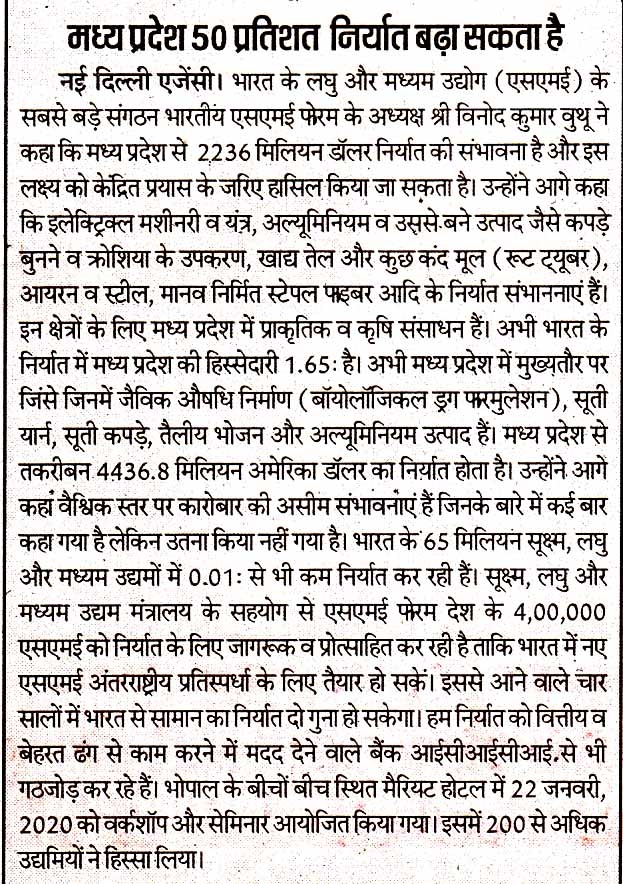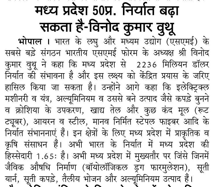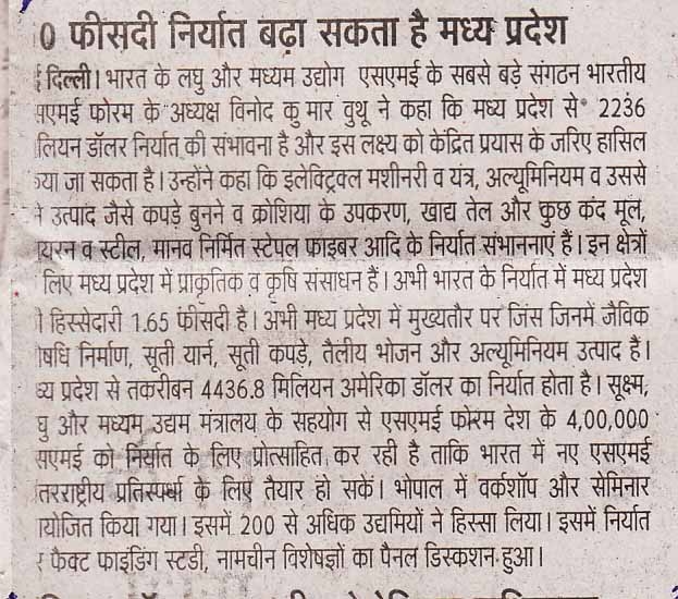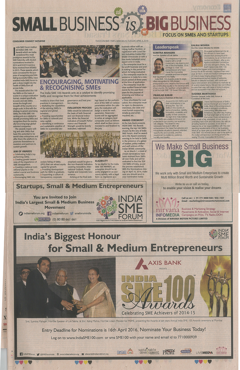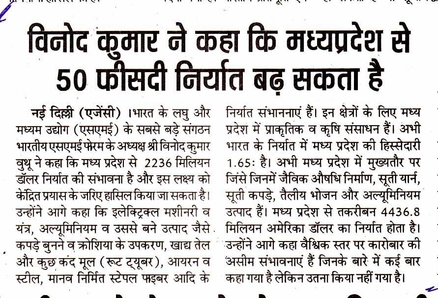 | 669 | 30-09-2021 | The Economics Times Rise | MSMEs to help achieve $400 bn exports target: Rane | Online | View details | |