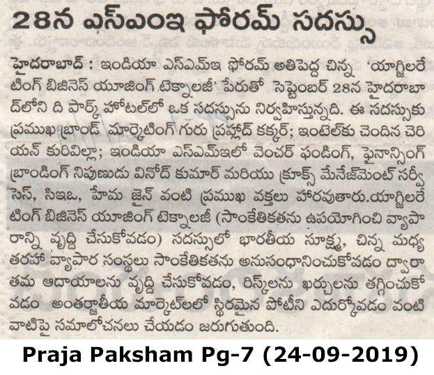 | 656 | 21-07-2021 | India Technology News | Draft e-commerce rules could disrupt 6.3 crore MSMEs across India: India SME Forum | Online | View details | |