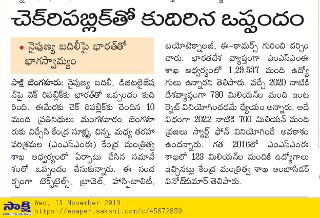| 657 | 21-07-2021 | Deccan Chronicle | News draft rules to hit MSMEs hard | Online | View details | |