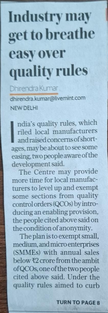 | 659 | 20-07-2021 | Financial Express | Flash sale ban, DPIIT registration, other proposed amendments in E-commerce Rules to hit MSMEs: Experts | Online | View details | |