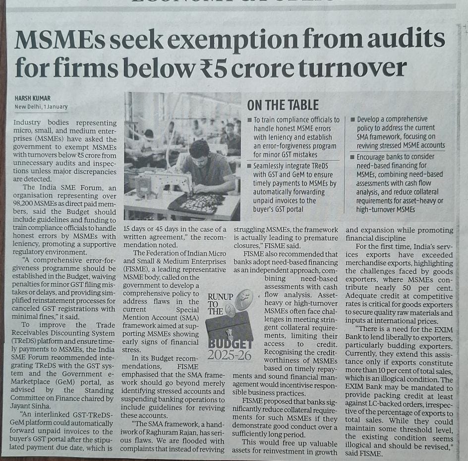 | 619 | 28-05-2021 | Financial Express | India SME Forum writes to GST Council seeking concessions for the MSME sector | Online | View details | |